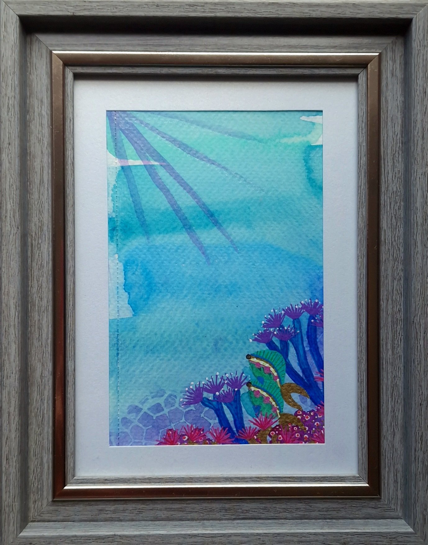 Watercolor with gel and gold, painted with oceanwater