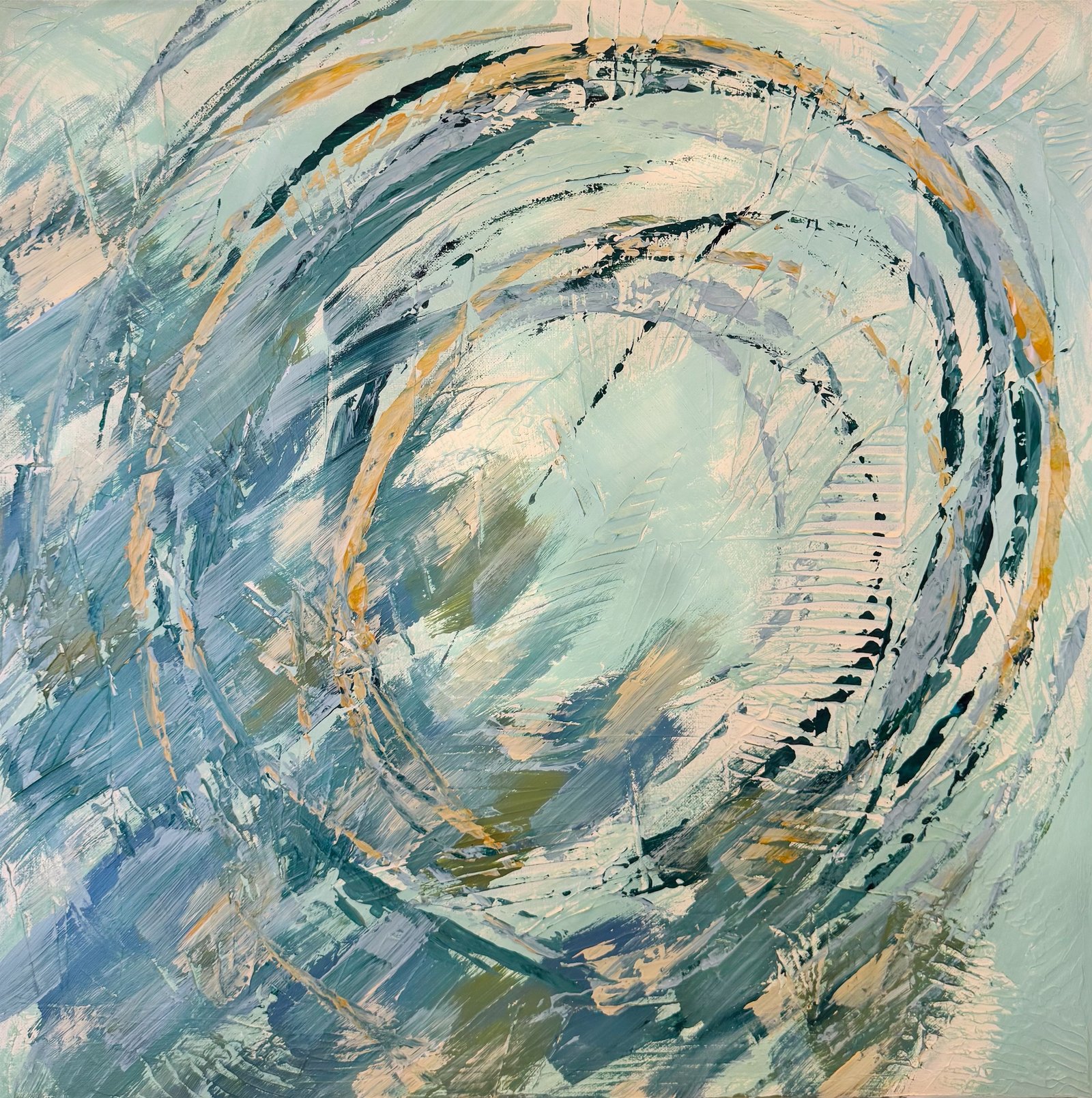 Passion in The Turquoise Sea, Acrylic and Mixed Media on Canvas, 50cmx50cm, 2026 by Jean Cherouny