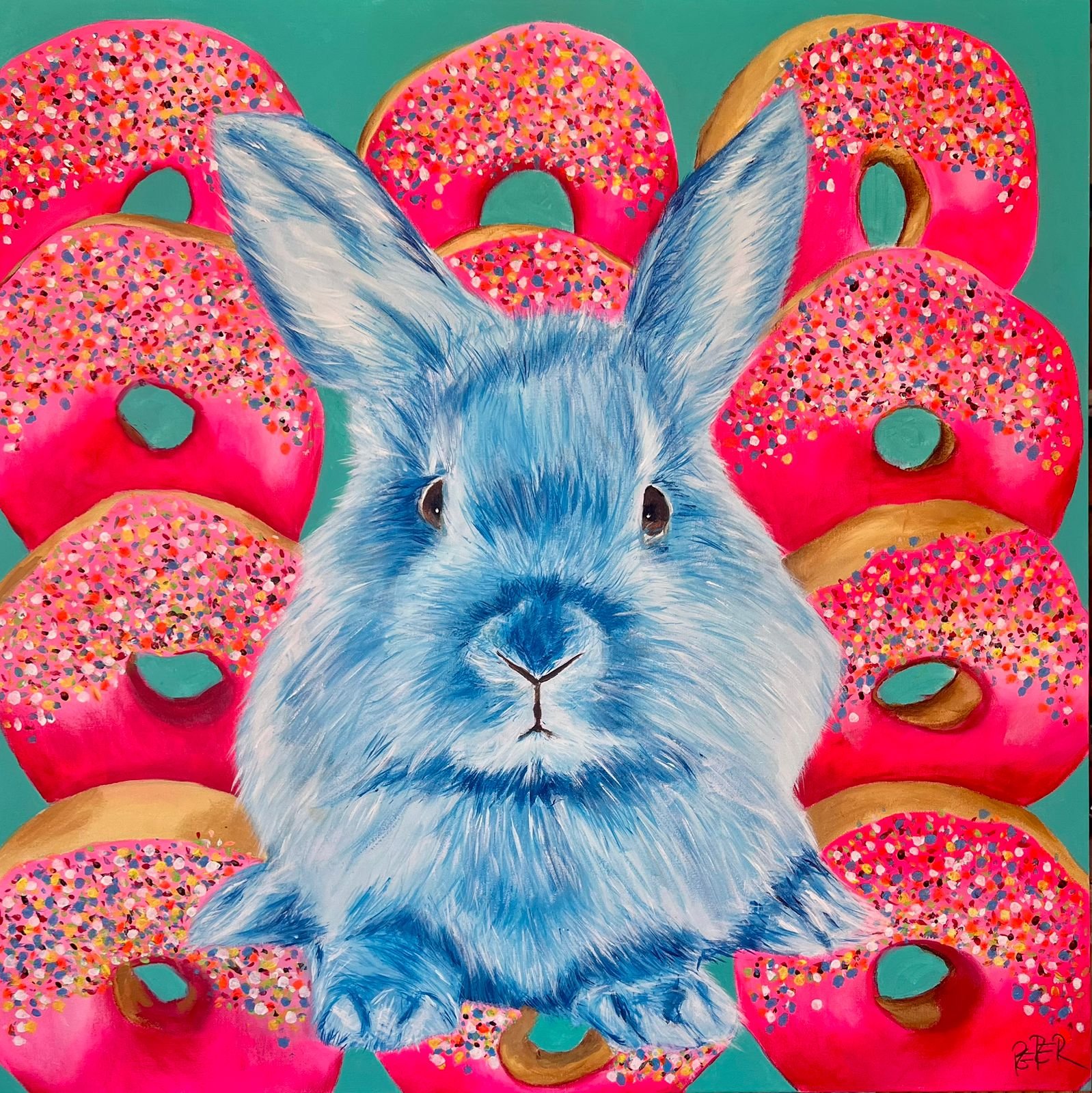 BLUE RABBIT WITH STRAWBERRY DONUTS