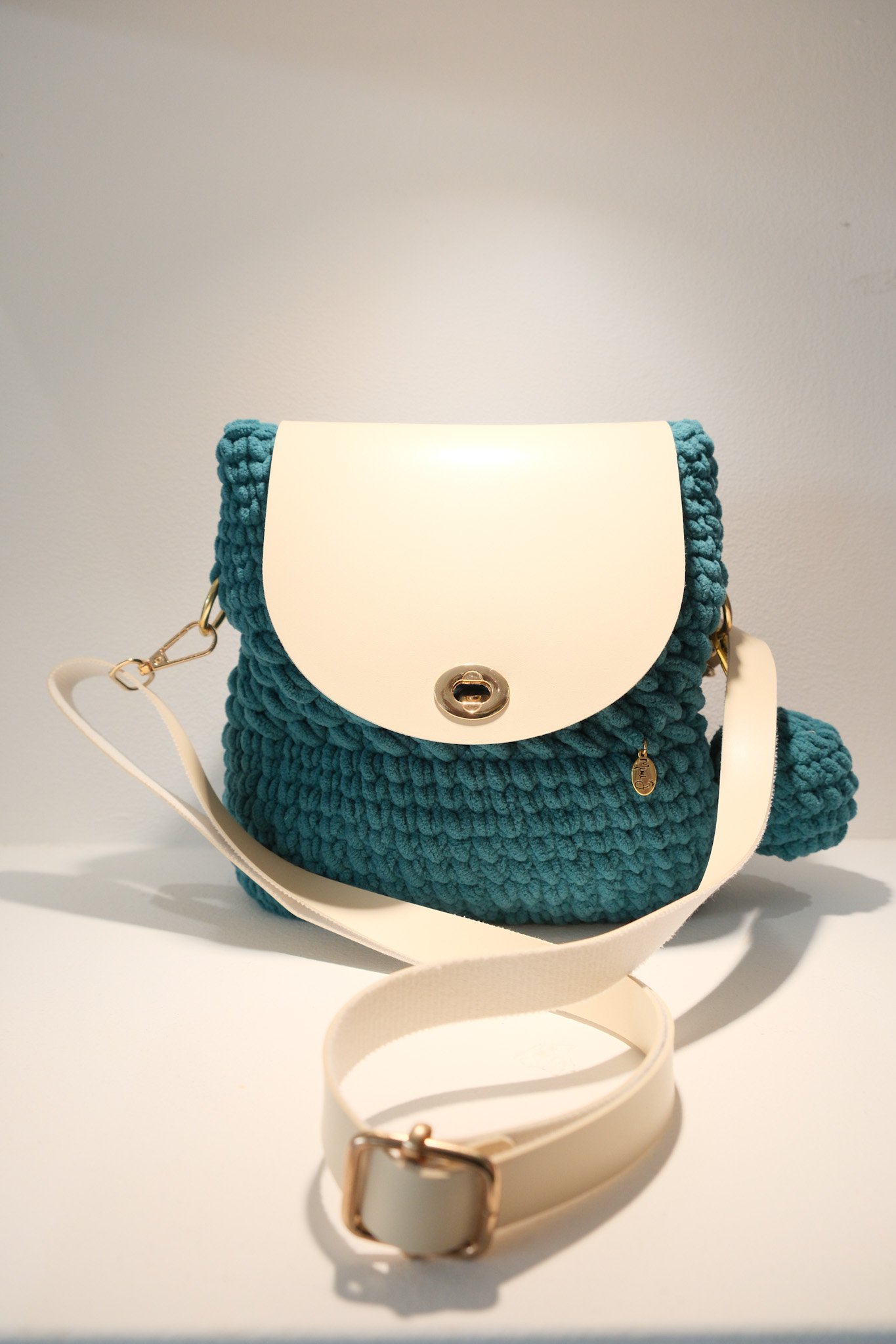 Teal & White Knitted Bag quantity