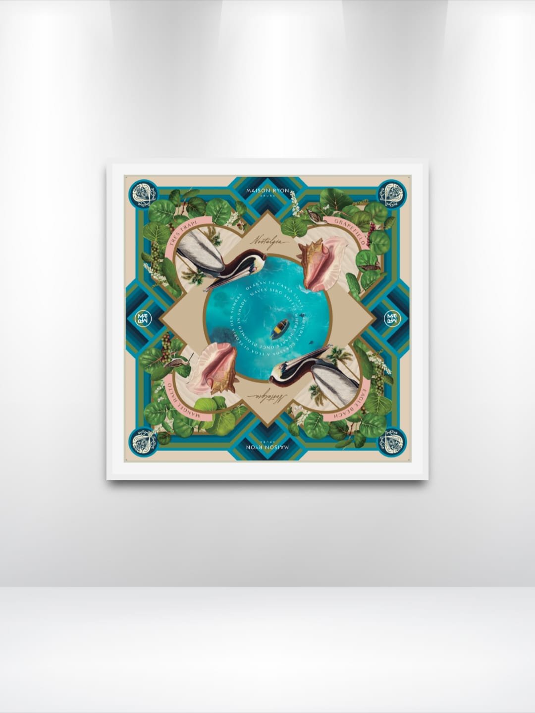 Maison Ryon Aruba, FRAMED OCEAN NOSTALGIA SILK FOULARD Scarf, 75cmx75cm/60x60cm scarf, 2025