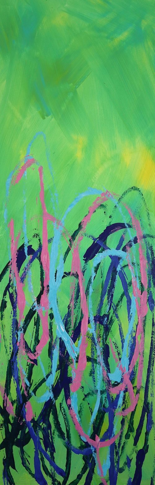 Jean Cheoruny, Growing with the Grass, 120x38cm, Acrylic on Canvas, 2025