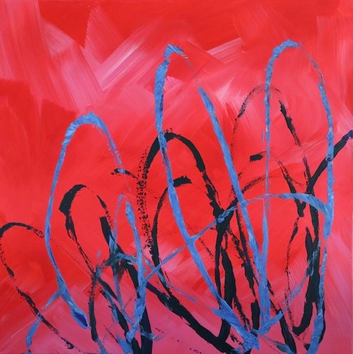 Jean Cherouny, Red and Blue, 50x50cm, Acrylic on Canvas, 2025