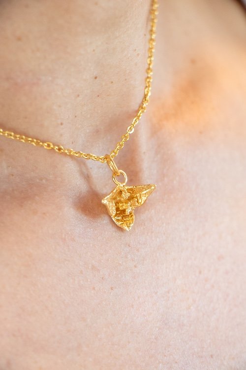 Ryon Dijkhoff, TRINITARIA ORO Necklace, PENDANT FROM THE ARUBAN SYMBOLS COLLECTION – including stainless steel necklace, SILVER METAL WITH 24K GOLD PLATING, 2 x 2 CM, 2025
